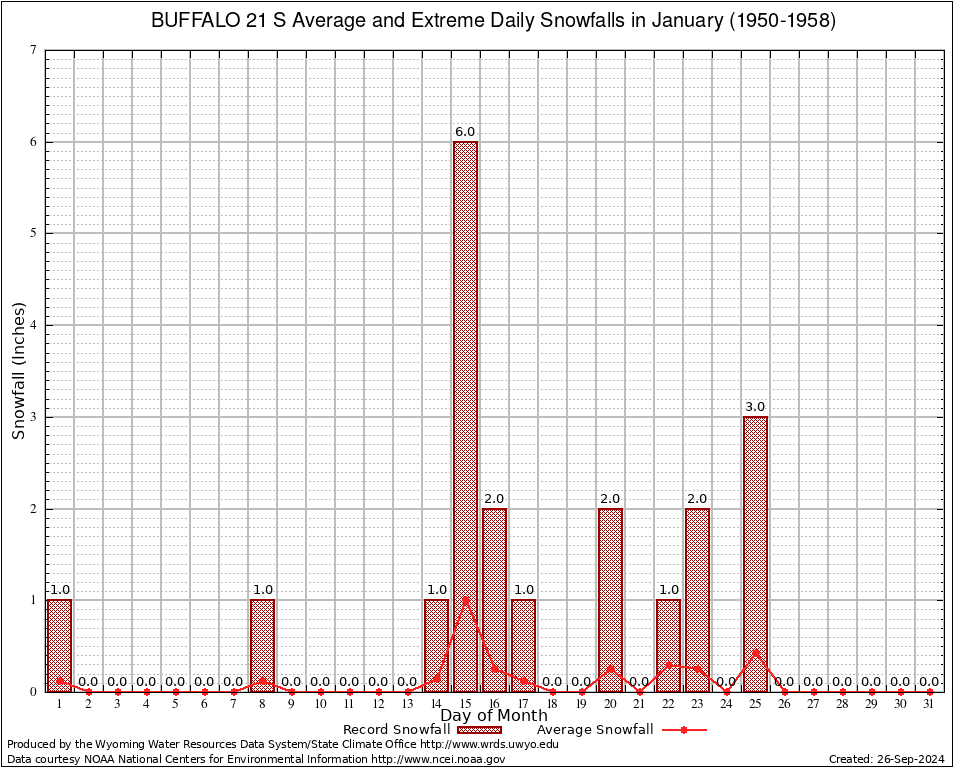 January Average and Extreme Daily Snowfall AMounts (1950-1958)