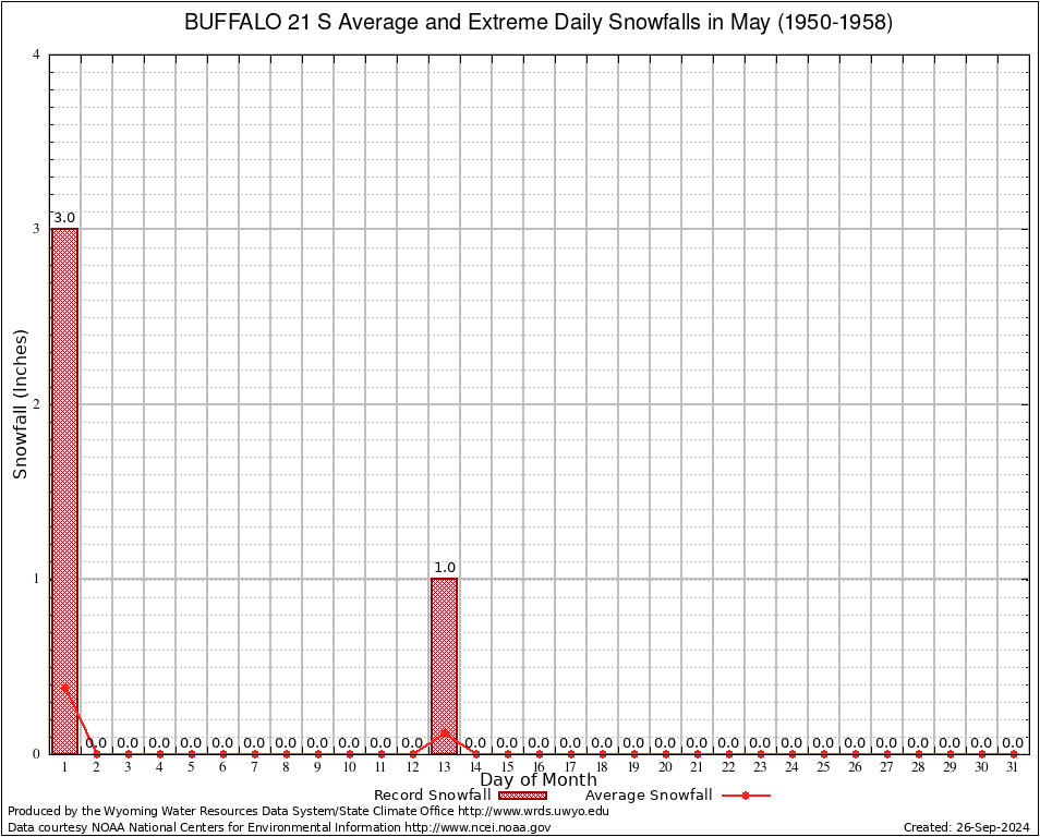 May Average and Extreme Daily Snowfall AMounts (1950-1958)