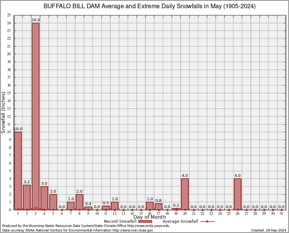 May Average and Extreme Daily Snowfall AMounts (1905-2024)