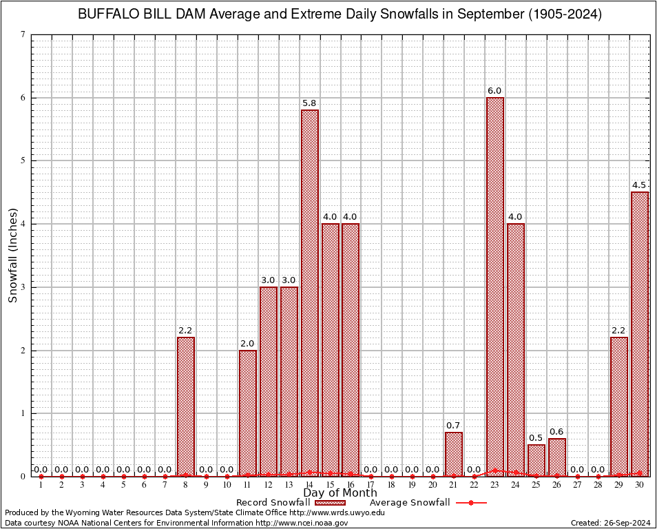 September Average and Extreme Daily Snowfall AMounts (1905-2024)