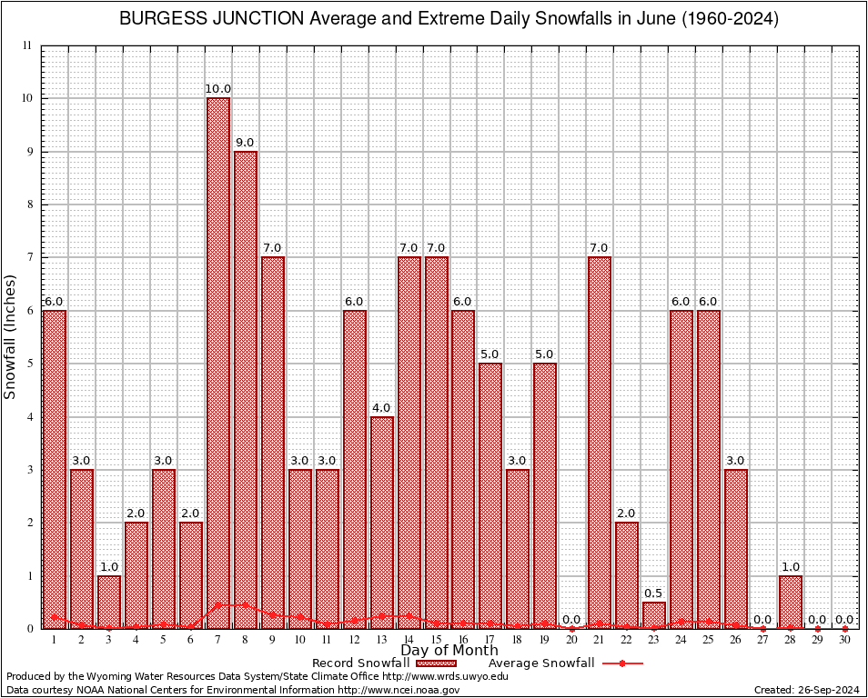 June Average and Extreme Daily Snowfall AMounts (1960-2024)