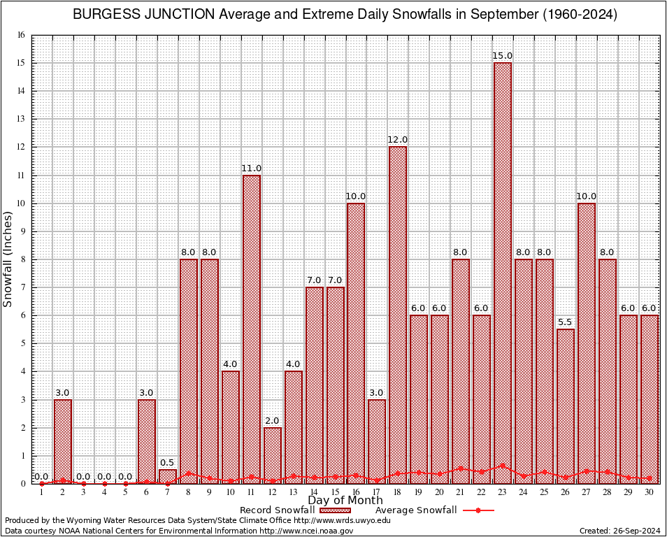 September Average and Extreme Daily Snowfall AMounts (1960-2024)