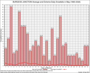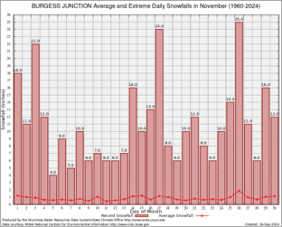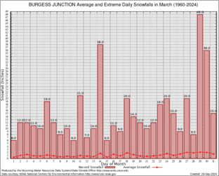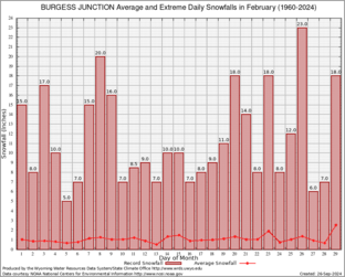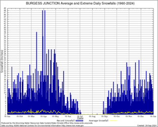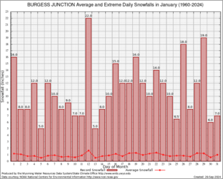Record Extreme and Average Daily Snowfall (1960-2024)