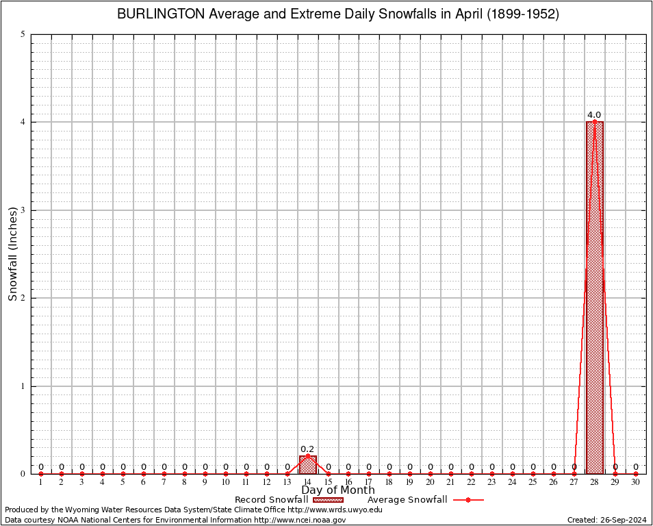 April Average and Extreme Daily Snowfall AMounts (1899-1952)