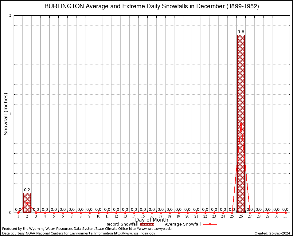 BURLINGTON (481240) December Average and Extreme Daily Snowfall AMounts (1899-1952) To index page for BURLINGTON