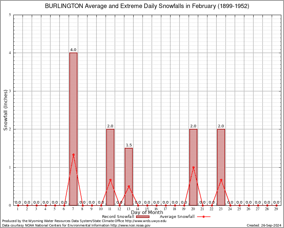 BURLINGTON (481240) February Average and Extreme Daily Snowfall AMounts (1899-1952) To index page for BURLINGTON