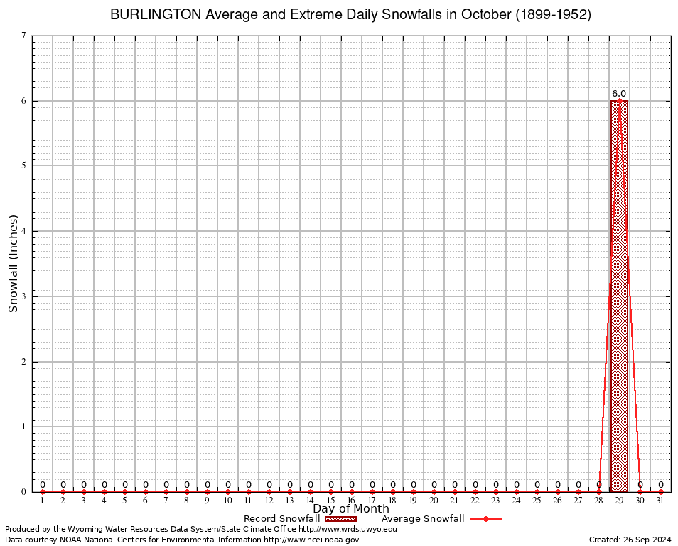 October Average and Extreme Daily Snowfall AMounts (1899-1952)