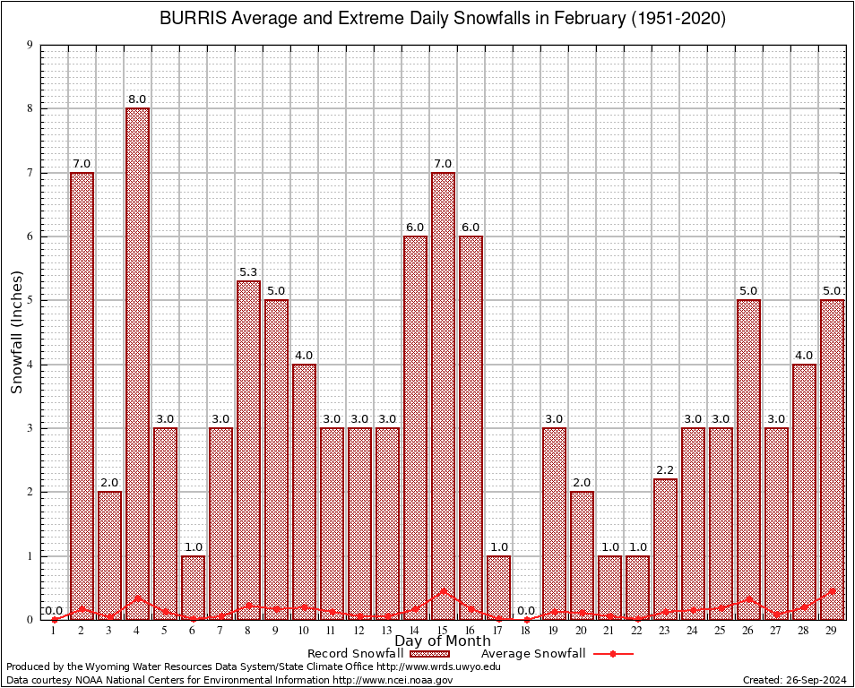 BURRIS (481284) February Average and Extreme Daily Snowfall AMounts (1951-2020) To index page for BURRIS