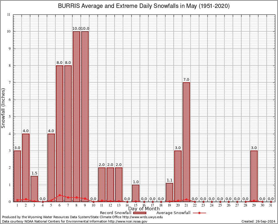 BURRIS (481284) May Average and Extreme Daily Snowfall AMounts (1951-2020) To index page for BURRIS