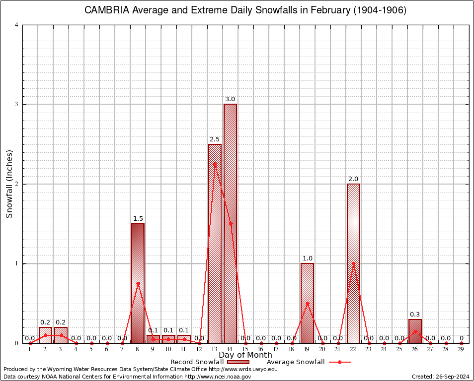 CAMBRIA (481400) February Average and Extreme Daily Snowfall AMounts (1904-1906) To index page for CAMBRIA