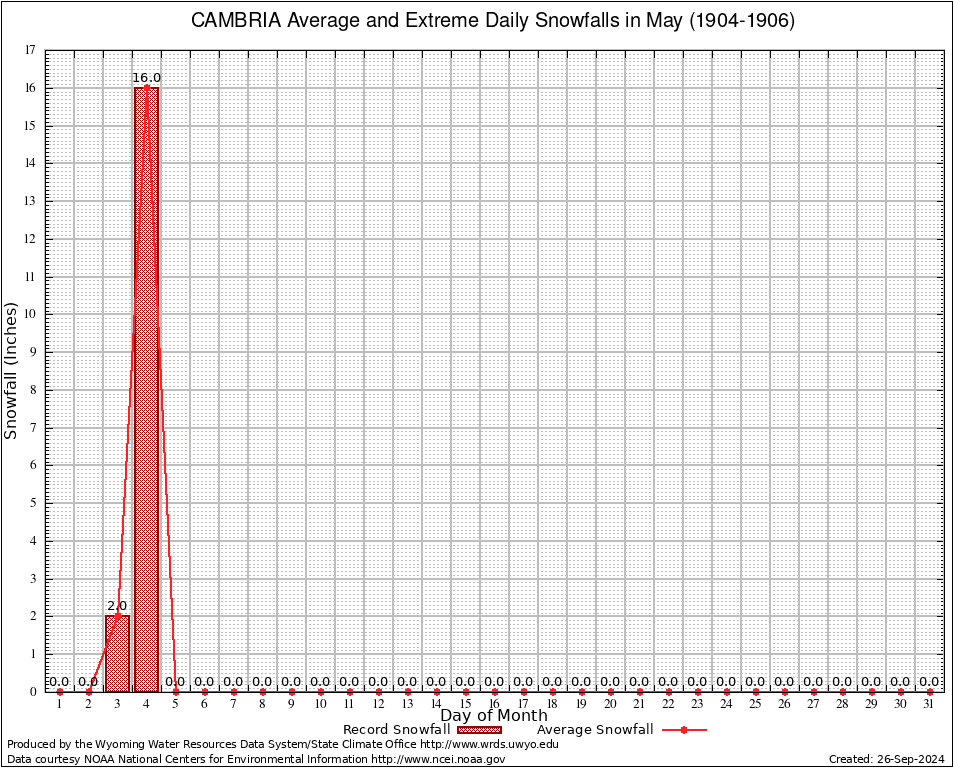 CAMBRIA (481400) May Average and Extreme Daily Snowfall AMounts (1904-1906) To index page for CAMBRIA