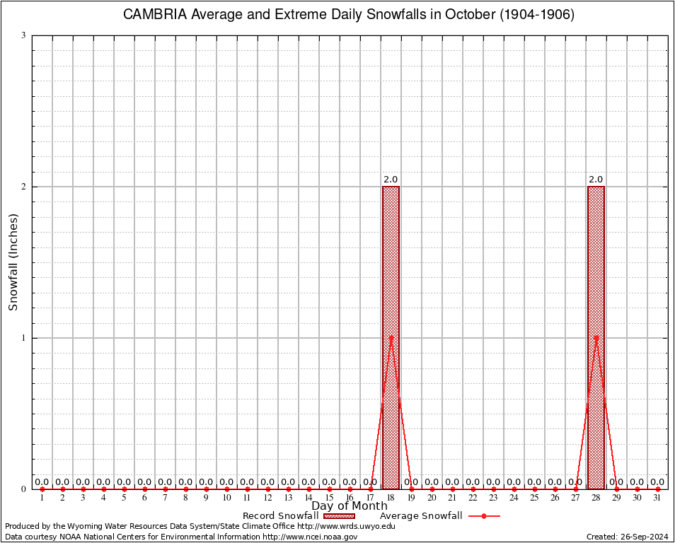 CAMBRIA (481400) October Average and Extreme Daily Snowfall AMounts (1904-1906) To index page for CAMBRIA