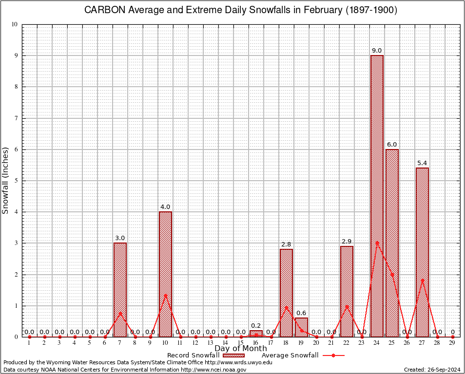 CARBON (481500) February Average and Extreme Daily Snowfall AMounts (1897-1900) To index page for CARBON