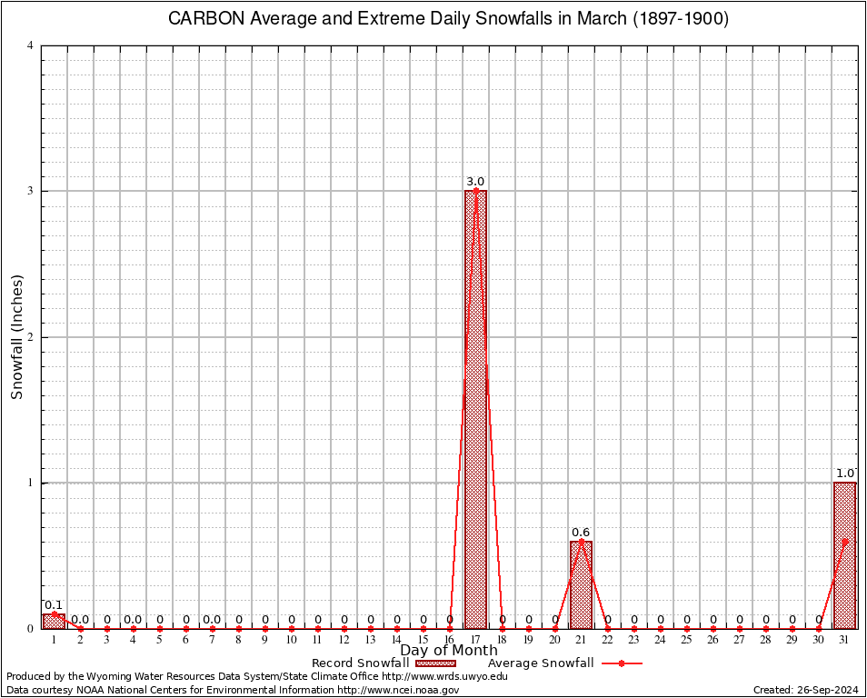 CARBON (481500) March Average and Extreme Daily Snowfall AMounts (1897-1900) To index page for CARBON