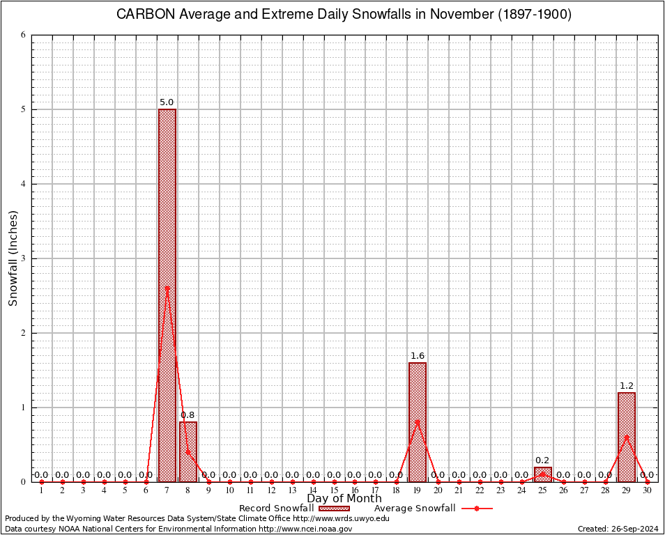CARBON (481500) November Average and Extreme Daily Snowfall AMounts (1897-1900) To index page for CARBON