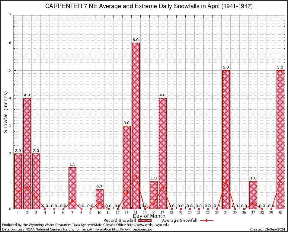 April Average and Extreme Daily Snowfall AMounts (1941-1947)