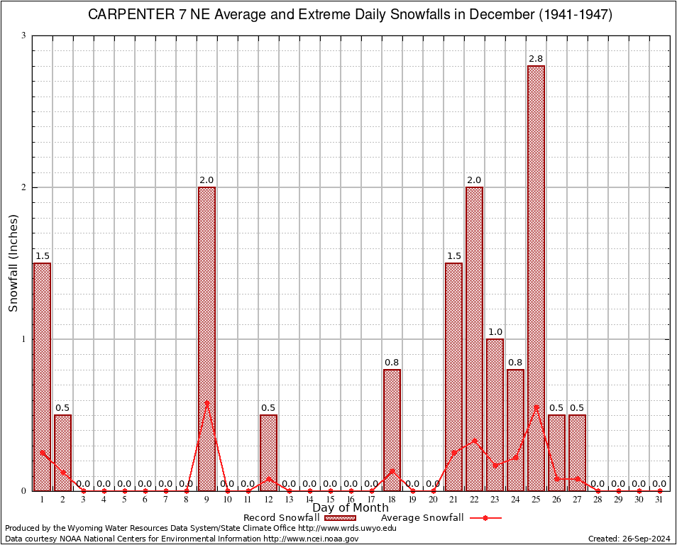 December Average and Extreme Daily Snowfall AMounts (1941-1947)