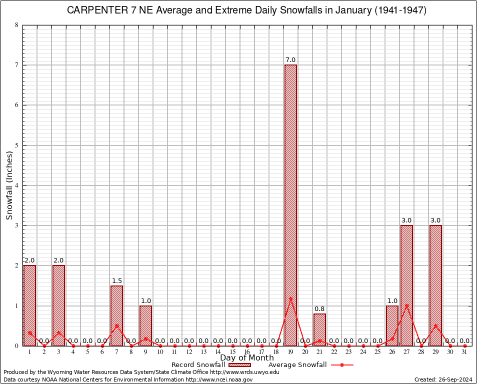 January Average and Extreme Daily Snowfall AMounts (1941-1947)