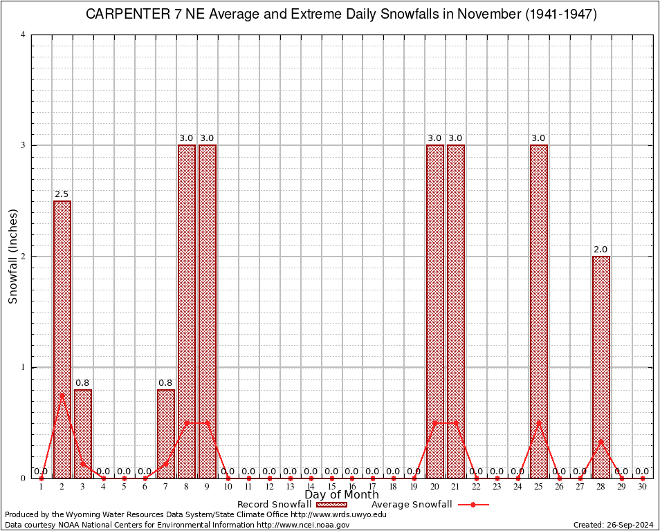 November Average and Extreme Daily Snowfall AMounts (1941-1947)