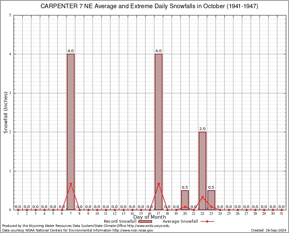 October Average and Extreme Daily Snowfall AMounts (1941-1947)