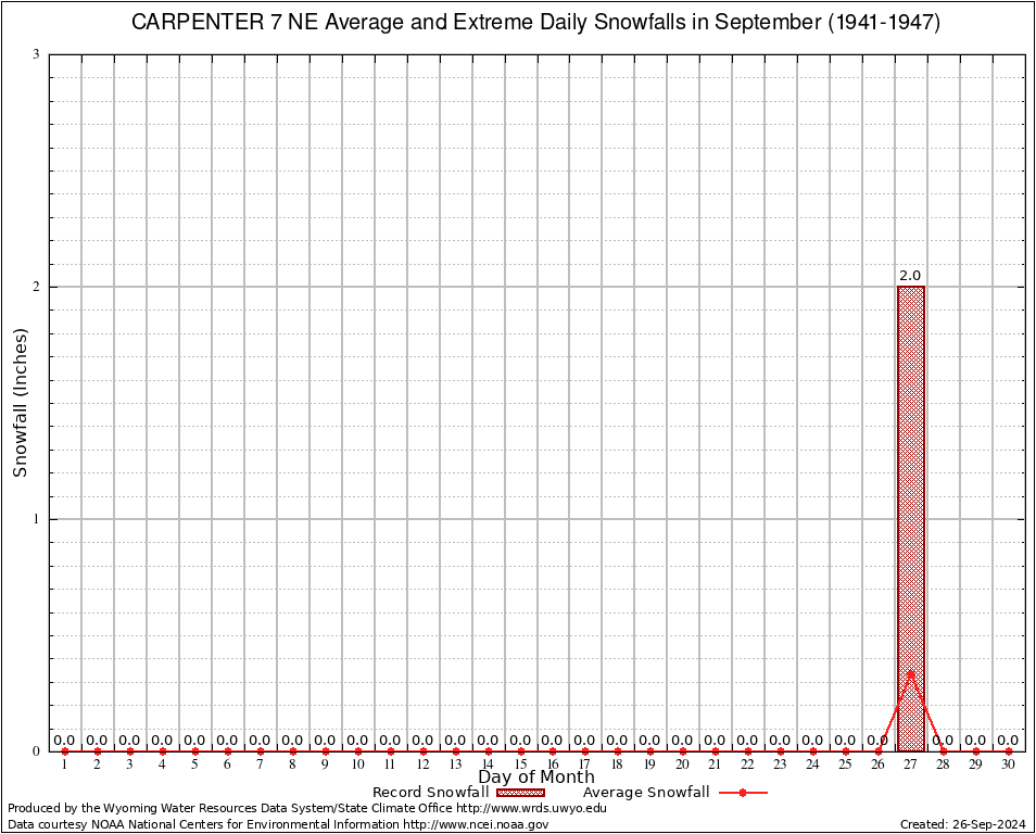 September Average and Extreme Daily Snowfall AMounts (1941-1947)