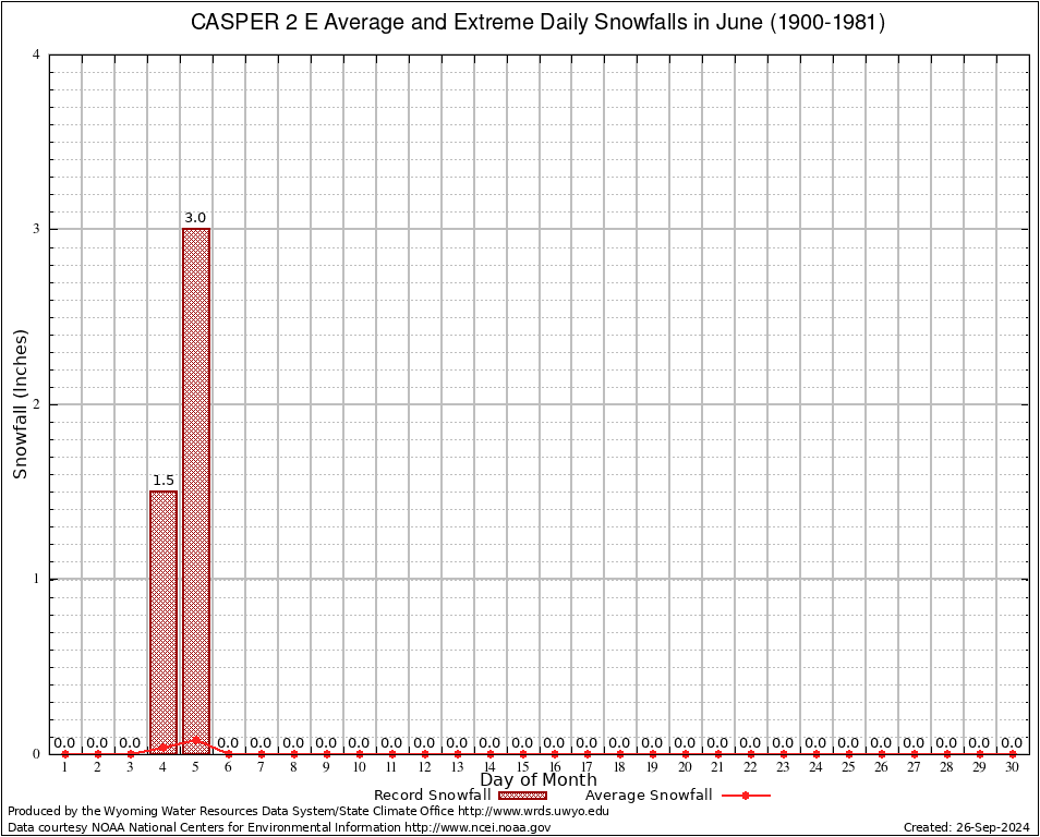 June Average and Extreme Daily Snowfall AMounts (1900-1981)