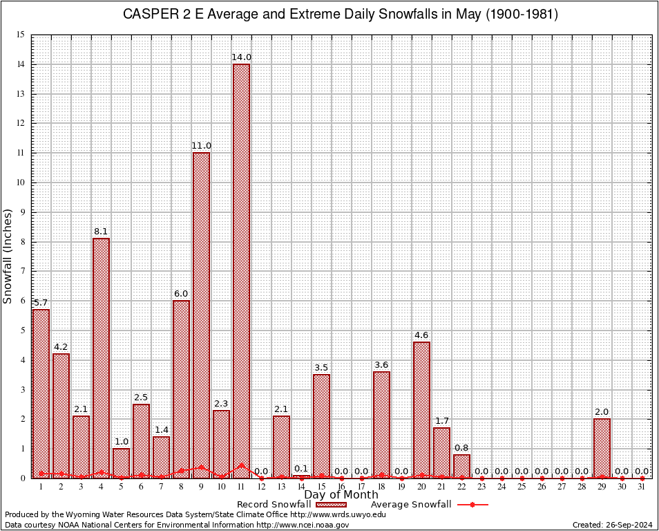 May Average and Extreme Daily Snowfall AMounts (1900-1981)