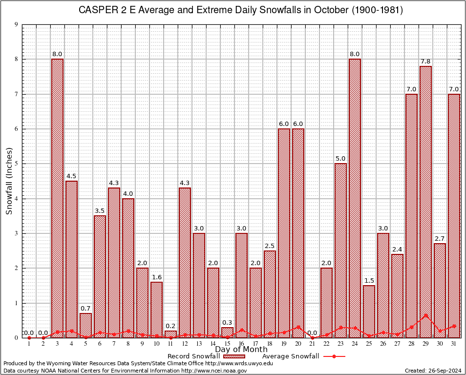 October Average and Extreme Daily Snowfall AMounts (1900-1981)