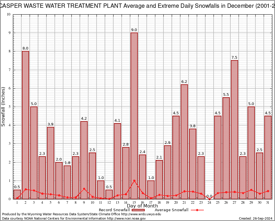 December Average and Extreme Daily Snowfall AMounts (2001-2024)