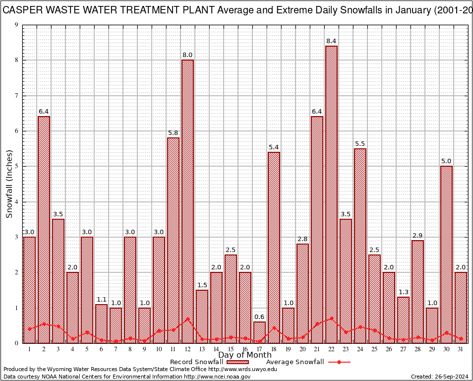 January Average and Extreme Daily Snowfall AMounts (2001-2024)