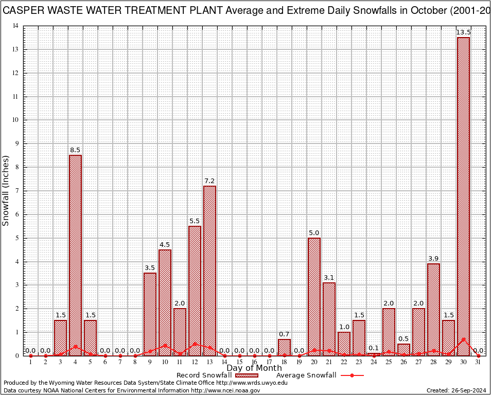 October Average and Extreme Daily Snowfall AMounts (2001-2024)