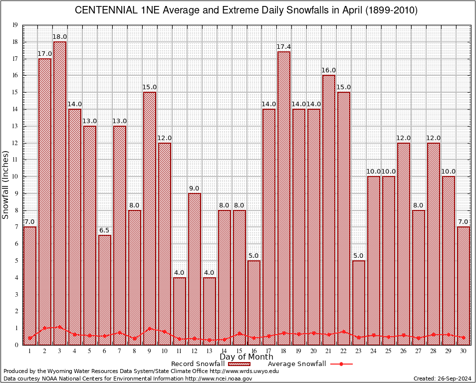 April Average and Extreme Daily Snowfall AMounts (1899-2010)