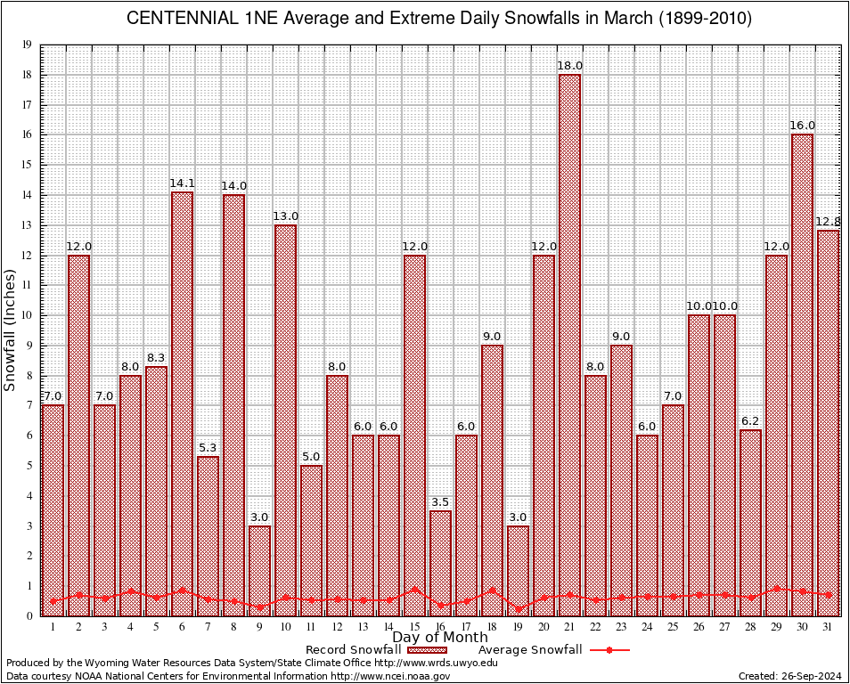 March Average and Extreme Daily Snowfall AMounts (1899-2010)