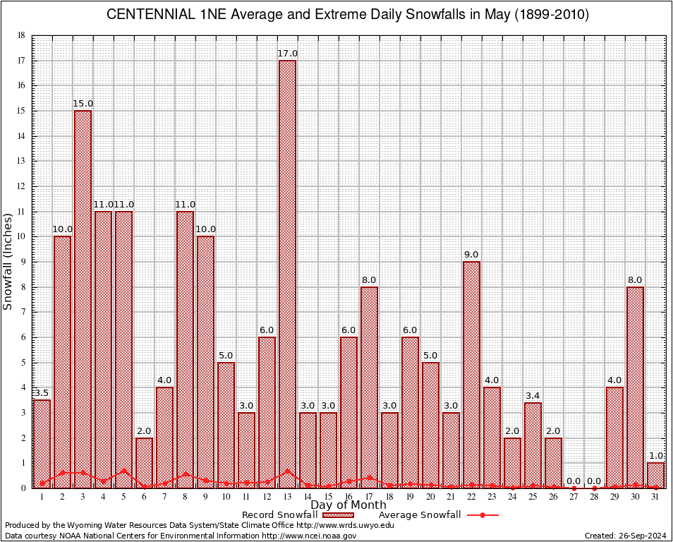 May Average and Extreme Daily Snowfall AMounts (1899-2010)