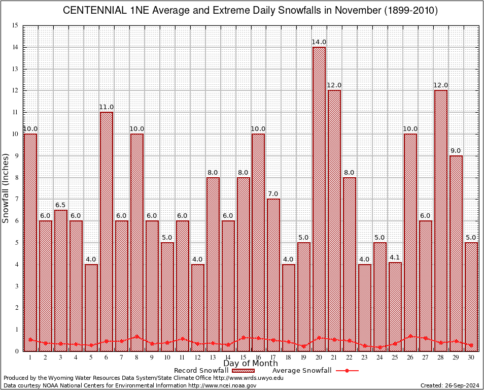November Average and Extreme Daily Snowfall AMounts (1899-2010)