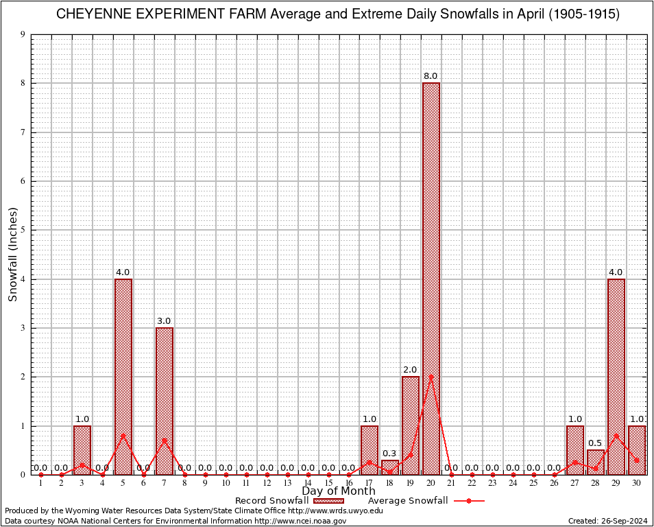 April Average and Extreme Daily Snowfall AMounts (1905-1915)