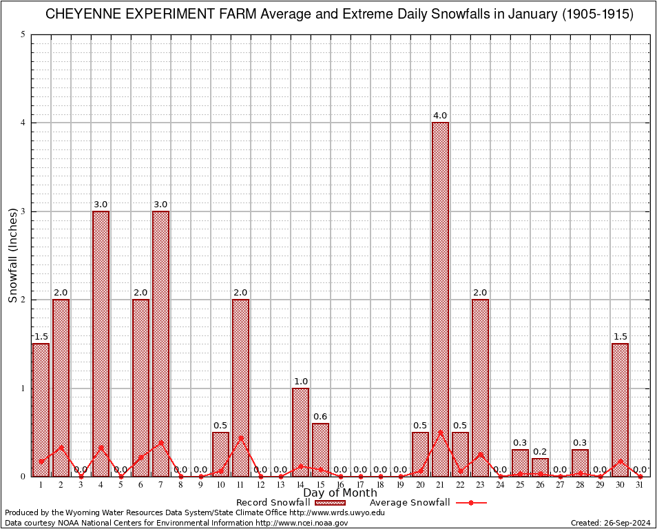 January Average and Extreme Daily Snowfall AMounts (1905-1915)