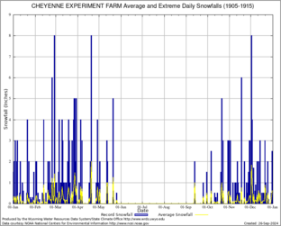 CHEYENNE EXPERIMENT FARM (481670) Record Extreme and Average Daily Snowfall (1905-1915) See Here for Other Stations