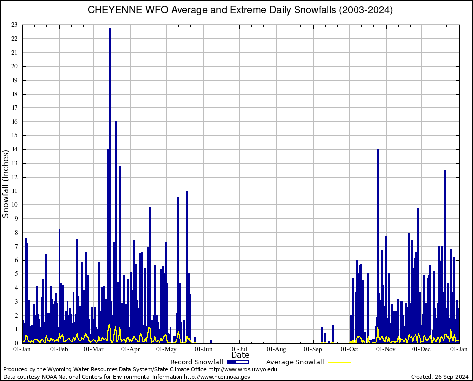 Annual Average and Extreme Daily Snowfall AMounts (2003-2024)