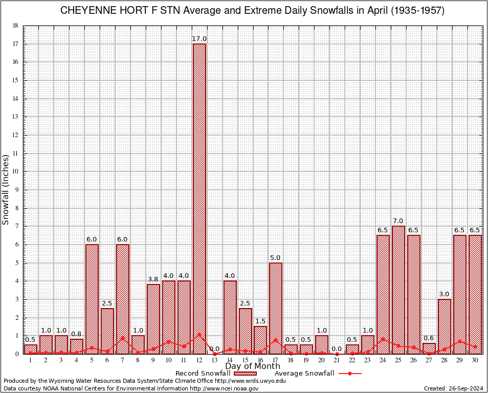 April Average and Extreme Daily Snowfall AMounts (1935-1957)