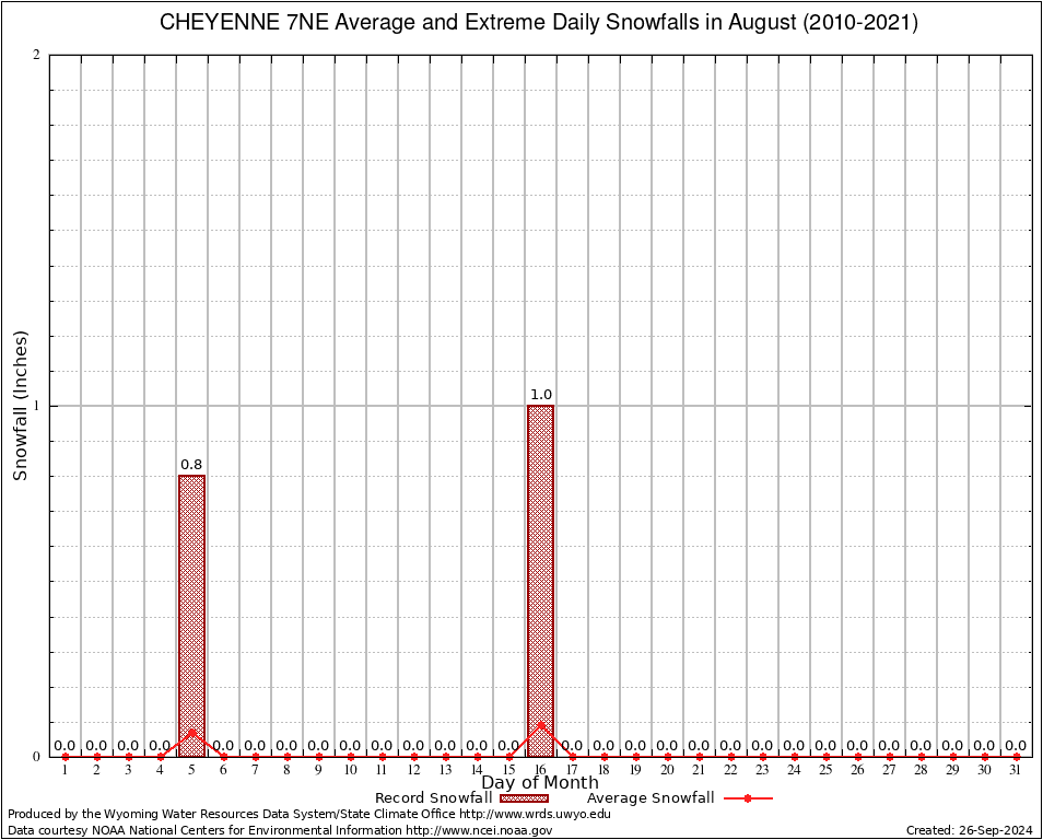 August Average and Extreme Daily Snowfall AMounts (2010-2021)