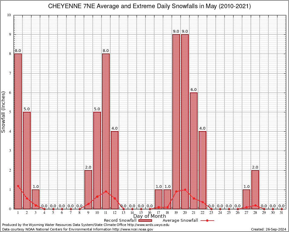 May Average and Extreme Daily Snowfall AMounts (2010-2021)