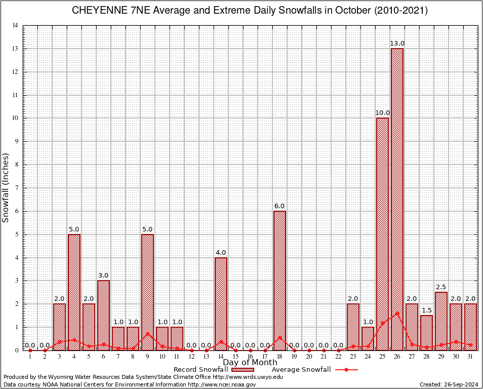 October Average and Extreme Daily Snowfall AMounts (2010-2021)