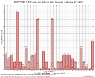 Record Extreme and Average Daily Snowfall (2010-2021)