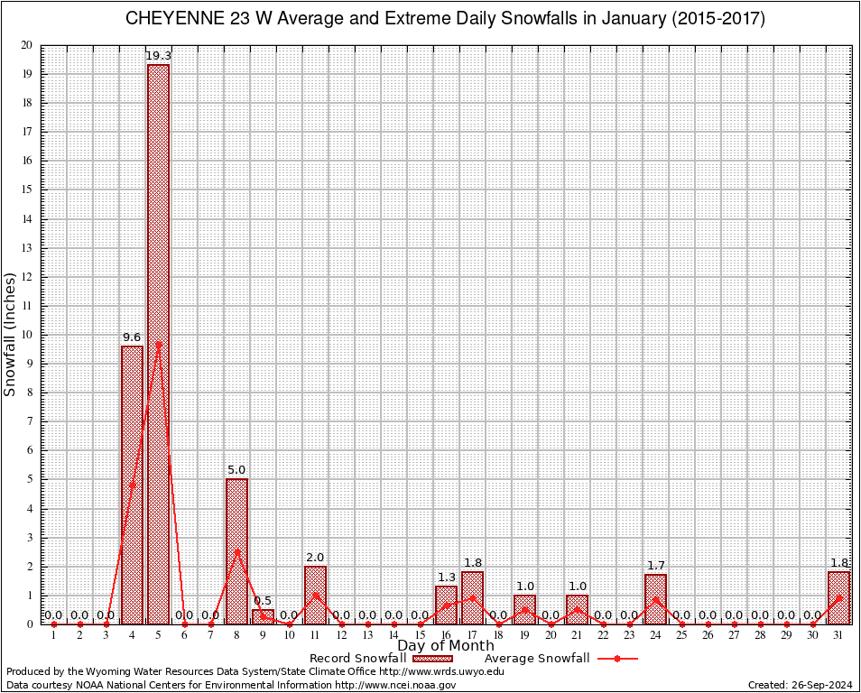 January Average and Extreme Daily Snowfall AMounts (2015-2017)