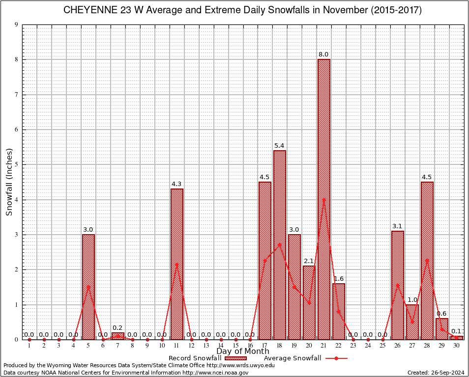 November Average and Extreme Daily Snowfall AMounts (2015-2017)