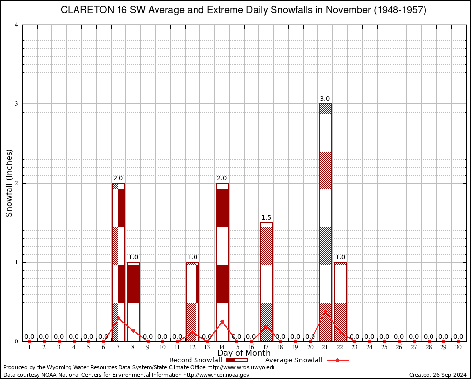November Average and Extreme Daily Snowfall AMounts (1948-1957)