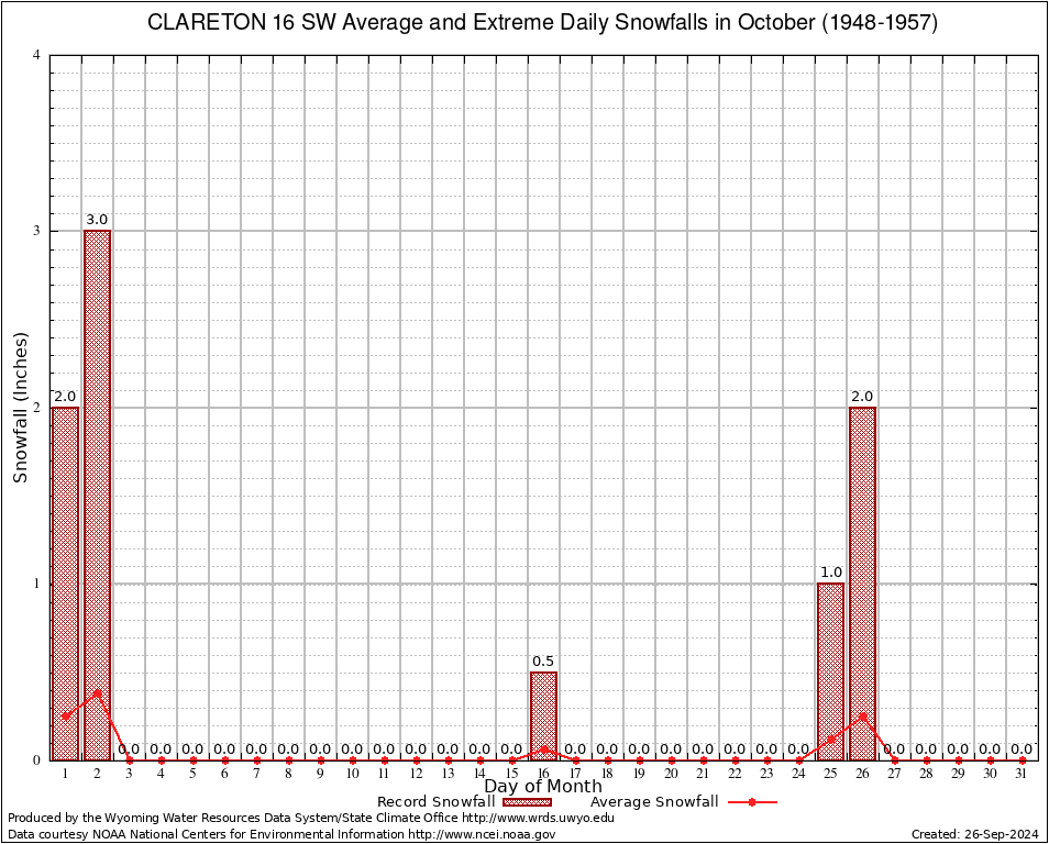 October Average and Extreme Daily Snowfall AMounts (1948-1957)