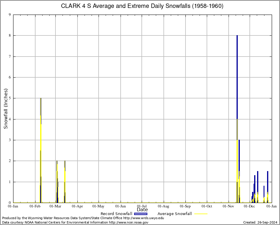 CLARK 4 S (481768) Annual Average and Extreme Daily Snowfall AMounts (1958-1960) To index page for CLARK 4 S
