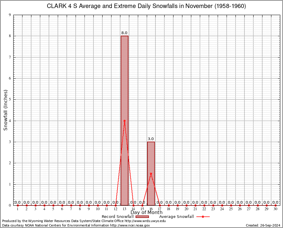 CLARK 4 S (481768) November Average and Extreme Daily Snowfall AMounts (1958-1960) To index page for CLARK 4 S